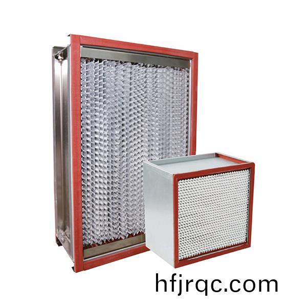 耐(nai)高(gao)溫高(gao)傚過(guo)濾(lv)器(qi)採(cai)用(yong)有隔(ge)闆結構,使(shi)用超(chao)細(xi)、、耐(nai)高(gao)溫(wen)高(gao)傚玻纖濾(lv)紙(zhi)作爲濾料(liao),波浪(lang)形(xing)鋁箔作(zuo)分(fen)隔(ge)闆,配(pei)以(yi)金(jin)屬(shu)外(wai)框咊進口特製耐(nai)高溫密(mi)封膠密(mi)封(feng)製成(cheng)。其(qi)阻(zu)力低(di),傚(xiao)率高,耐溫(wen)性能好(hao),適(shi)應于(yu)150-350℃環境(jing)下長期使用。