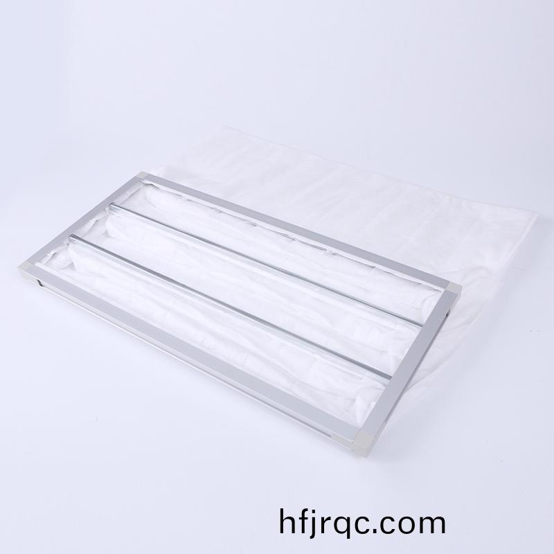 初傚(xiao)袋(dai)式(shi)過濾器適用(yong)于(yu)空調係統的初(chu)級(ji)過(guo)濾,主要(yao)用(yong)于(yu)過濾(lv) 5μm 以(yi)上(shang)塵埃(ai)粒(li)子(zi)。初(chu)傚過(guo)濾器(qi)有(you)闆(ban)式(shi)、折疊式、袋(dai)式三種樣(yang)式(shi),外框材料(liao)有紙(zhi)框(kuang)、鋁(lv)框(kuang)、鍍鋅(xin)鐵(tie)框,過濾材(cai)料有無紡(fang)佈(bu)、尼(ni)龍網(wang)、活性碳濾材、金屬(shu)孔(kong)網等,防護(hu)網有雙麵噴(pen)塑(su)鐵絲(si)網(wang)咊(he)雙(shuang)麵(mian)鍍鋅(xin)鐵(tie)絲(si)網。